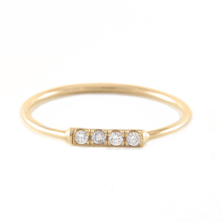 Product & Returns Roger Benetar'̴ås eponymous collection specializes in handcrafting 14K gold to accentuate beautiful gemstones. This thin gold band is rounded and set with 4 diamonds...