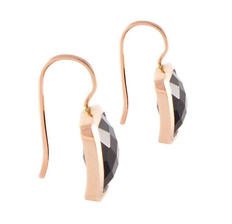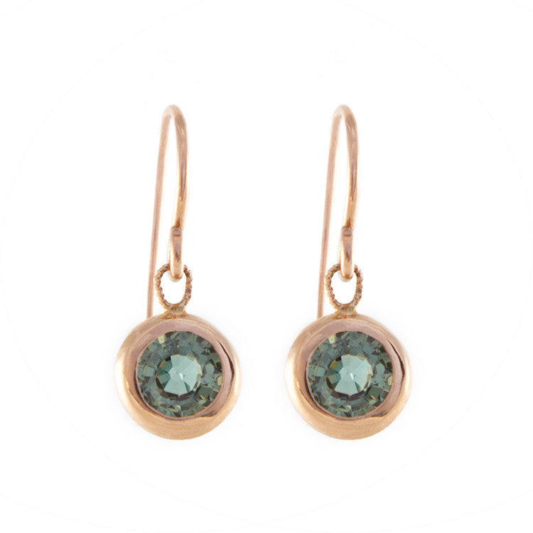 Product & Returns Tiny green sapphires (3 carats) are encircled by 14K rose gold to create Roger Benatar's delicate drop earrings. The round cut gemstones are eye-catching...